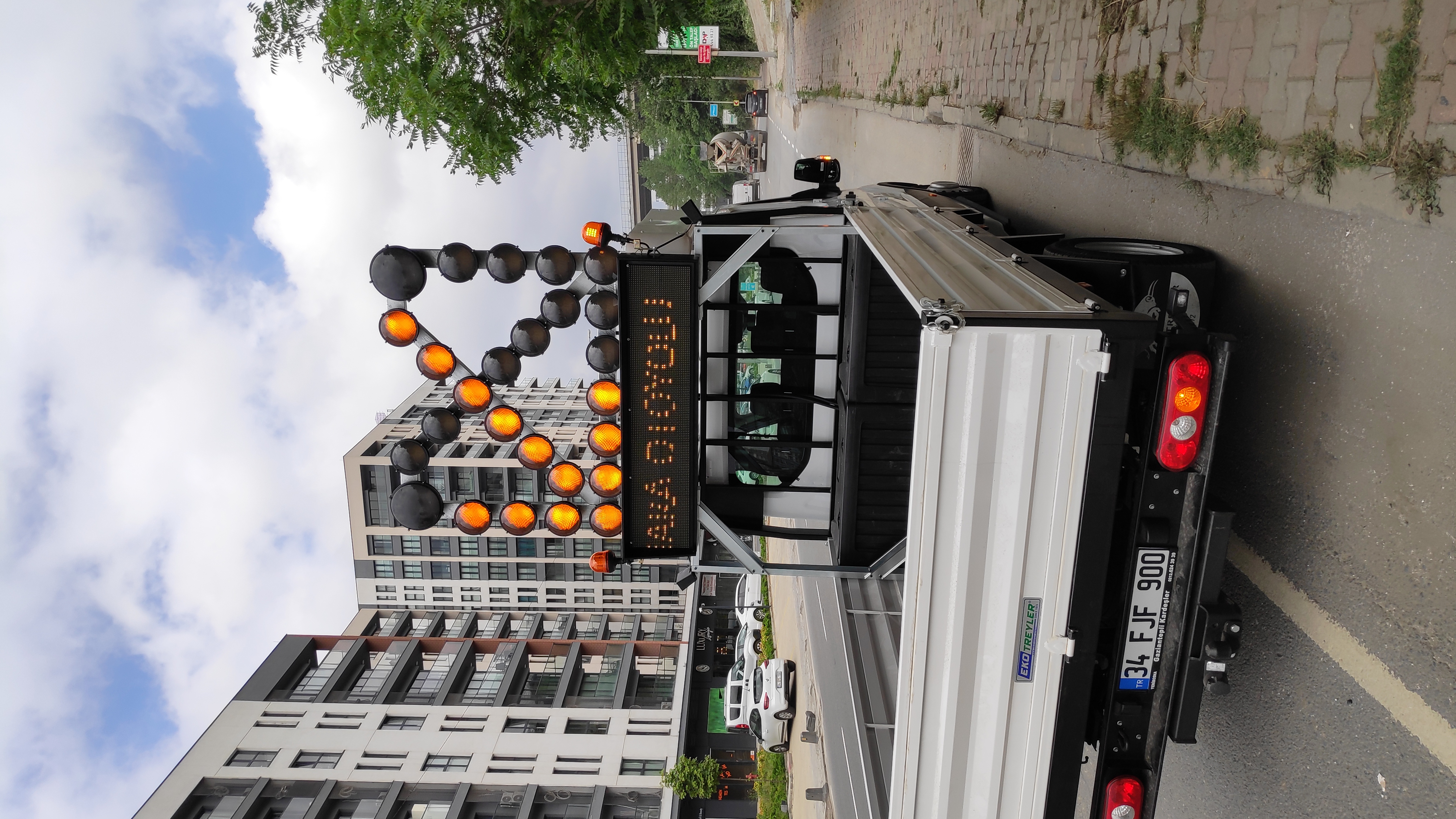 Right arrow, left arrow, cross modes for road closure, road splitting, lane closing operations are controlled from the control panel inside the vehicle. There are 24 yellow led modules and 2 white flashing modules. There are 21w power LEDs in each module. Thanks to robotic arms and electronic sensors specially designed by Elektroart engineers, it opens and becomes active in seconds.