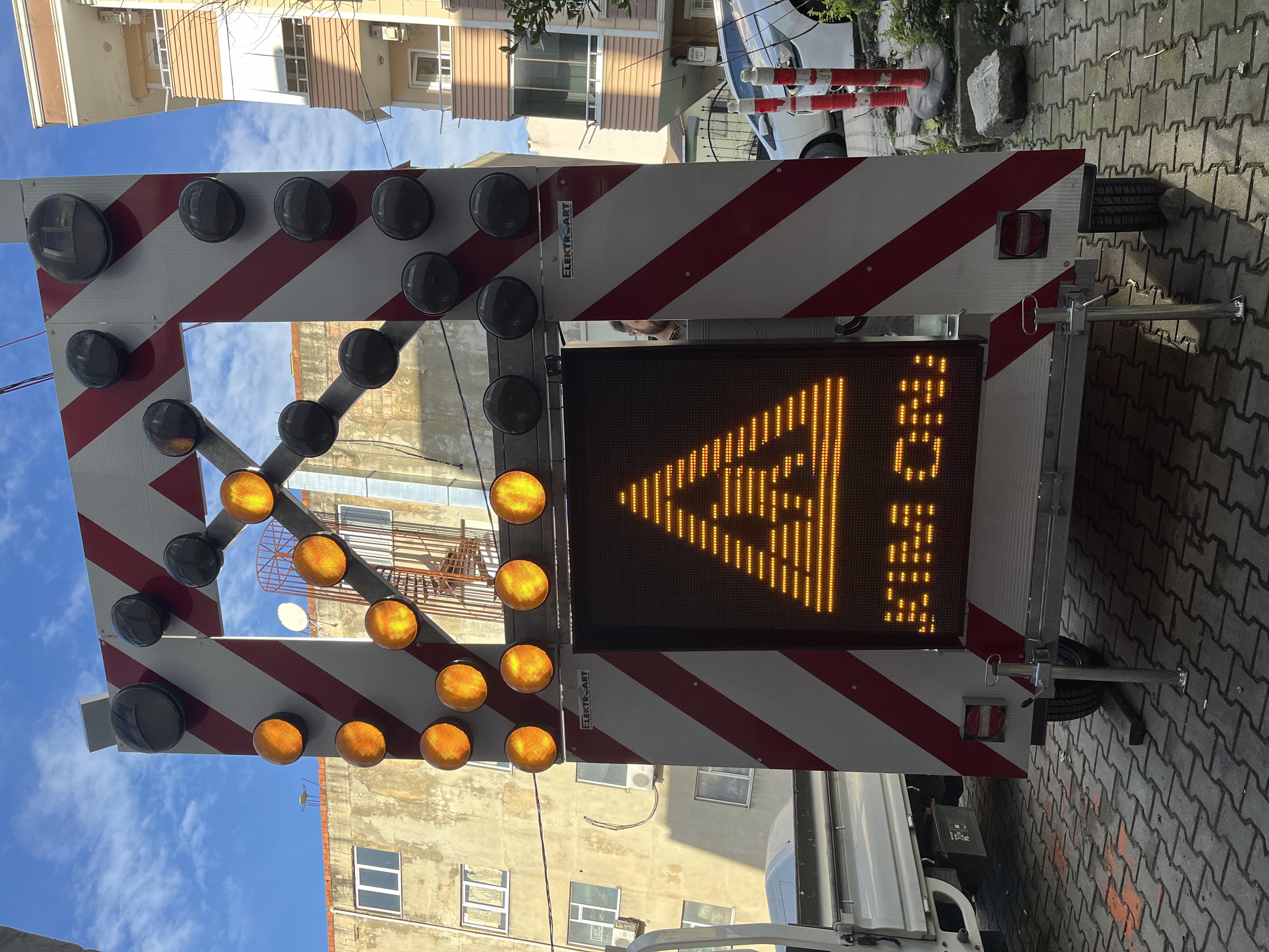 -According to the direction in which the upper arrows of the traffic warning trailer change, the arrow at the bottom turns automatically.