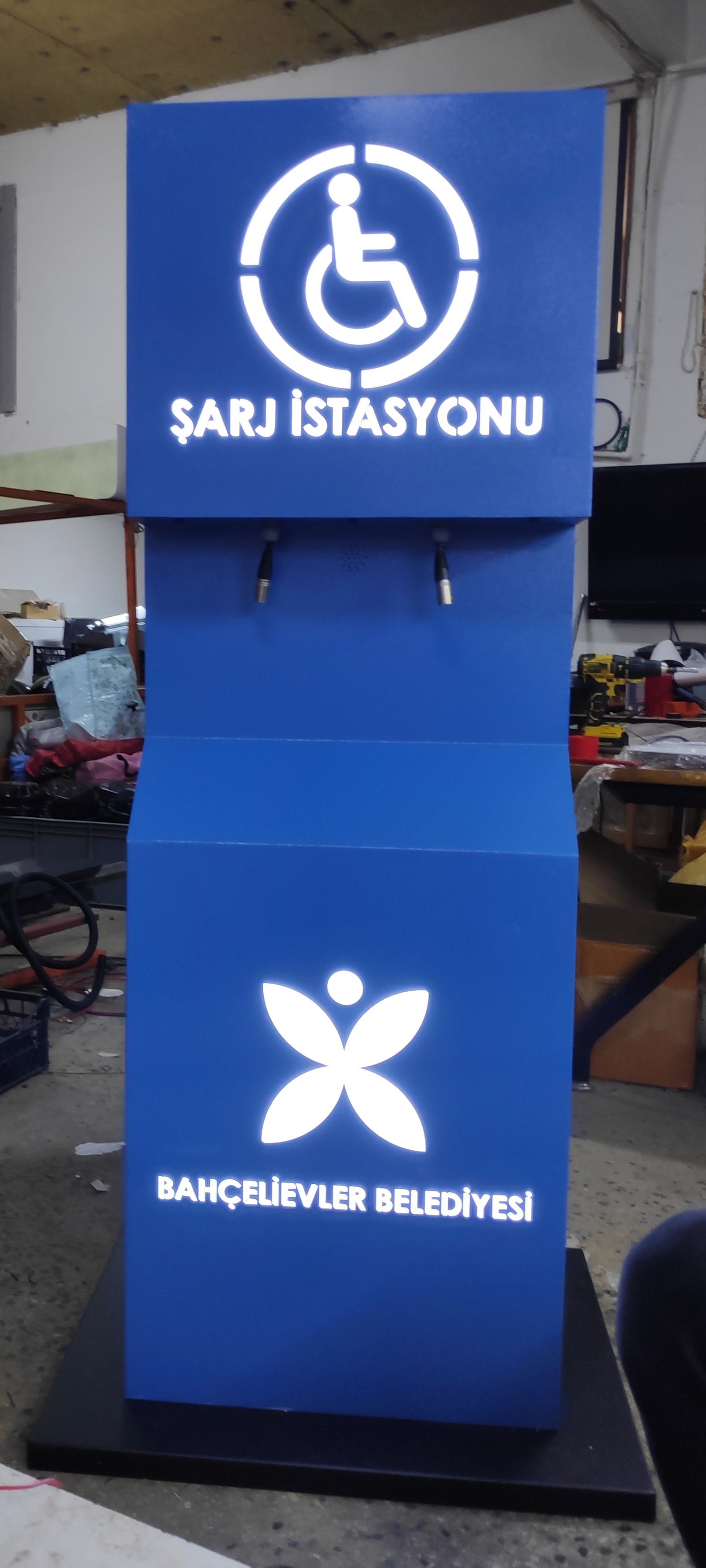 * Engelli Araç Şarj İstasyonu 550 x 425 x 1600 mm ölçülerinde üretilmektedir.